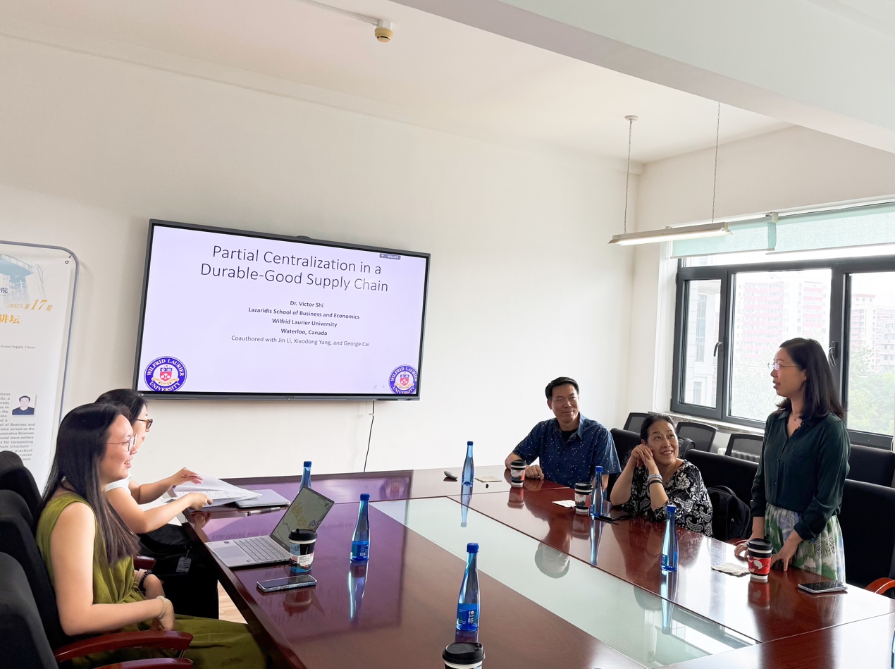 Chunming Shi老师本次讲座的主题为“Partial Centralization in a Durable-Good Supply Chain”。大多数供应链管理研究假设供应链结构要么是完全集中式,要么是完全分散式,却忽略了现实中常见的部分集中式结构。所谓部分集中,是指企业拥有其合作伙伴的部分(而非全部)产权。为弥补这一研究空白,本研究分析了一个耐用品供应链的情境,其中制造商拥有其下游零售商的一部分股权。研究发现,第一,部分集中式结构可以成为耐用品供应链的均衡结构;第二,制造商在零售商中的最优持股比例随着产品耐用性和决策周期的延长而下降,这意味着在产品更耐用或决策周期更长的情况下,完全分散式结构更有可能成为供应链的均衡形态;最后,研究探讨了企业和供应链集中化带来的战略性收益这一研究方向。