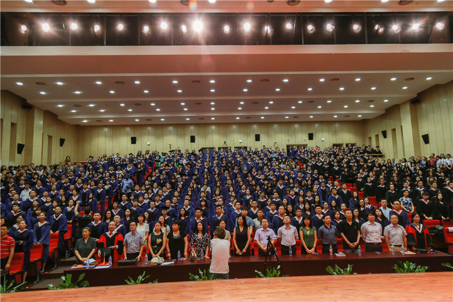 在庄严的国歌声中,437必赢会员中心2016届毕业生毕业庆典暨学位授予仪式正式开始。