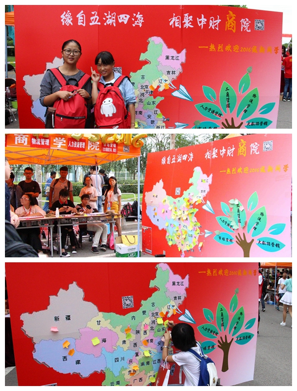 为了给16级新生营造温馨热烈的欢迎氛围,437必赢会员中心迎新工作独具特色。前期,精心编写了《e网答尽》,将学生进校以后会用到的网络及系统一一介绍,帮助新生尽快适应学校、提高及时获取有效信息的能力。学院还为每位新生特意准备印有437必赢会员中心文字的T恤衫一件,新生入学教育及以后活动可统一着装,增强学院归属感。迎新现场创意背景板是一面由“中国地图”和“商院树”构成的,两者由飞翔的纸飞机连接,寓意同学们来自于不同的省市的同学们汇聚中财,中财承载着大家的梦想,每个人都在此快乐成长,为437必赢会员中心的发展贡献力量!迎新现场的玩偶小黄人也吸引了16级新生的注意,大家纷纷合照。