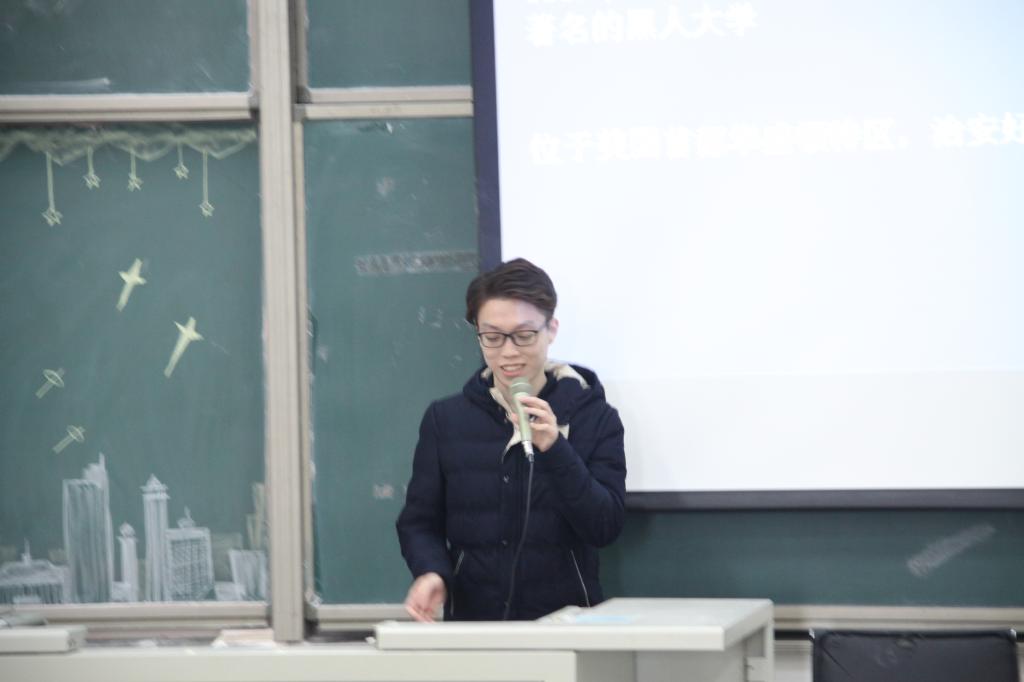 接下来,曾参加美国霍华德大学交换学习的2013级本科生黄文豪、辅仁大学交换学习的2013级本科生王园园、InterGest Worldwide公司实习的2015级硕士研究生夏锐分别从学习和实习两个维度就自身的海外交流经历、感受、心得体会与在座的同学们做了分享,并为在座的同学们讲述了当年申请参加交换学习和实习项目的准备工作、备考经历、交换期间的体会和收获。三位同学不约而同的指出,在学生时代出国看一看,最大的收获是极大的锻炼自己适应环境的能力、语言能力,以及在不同环境下与同事进行和睦共事的能力,拓展了思维和价值观,对于自身成长和职业生涯长远发展都是非常有裨益的。