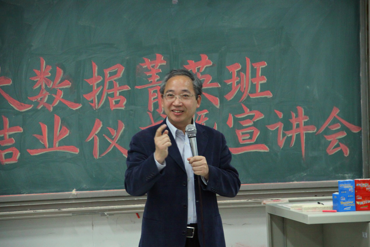 最后,教务处副处长张苏老师代表教务处向老师和同学们表达了对“大数据菁英班”的认可与赞许,希望我们“大数据菁英班”能够越办越好,同时也鼓励同学们能够珍惜宝贵的教学资源和难得的学习平台,继续挑战自我、积淀自我!