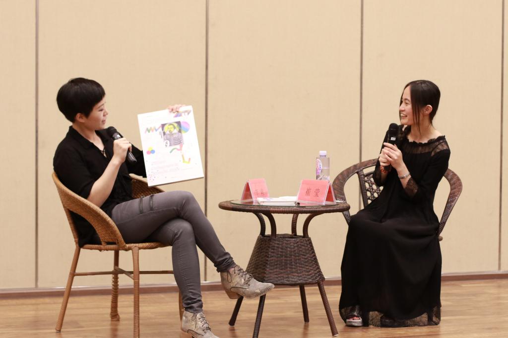 为了让大家更直观地理解插画与插画师的故事,崔莹博士与插画家芊祎围绕创作插画的心路历程、对中外插画的看法、电脑绘画对手绘绘画的替代作用等问题进行现场交流,探究了插画师内心的美好世界。