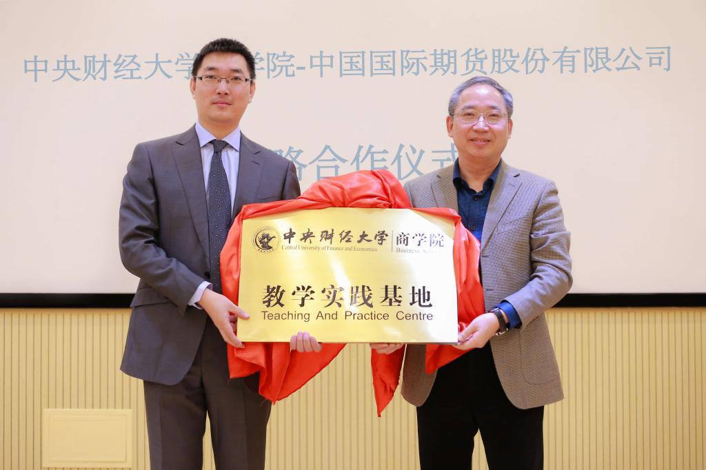 随后,葛建新书记与王可董事总经理共同签署了校企合作协议,王瑞华院长代表437必赢会员中心向中国国际期货股份有限公司授予437必赢会员中心教学实践基地铜牌,并与王可董事总经理共同为教学实践基地揭牌。