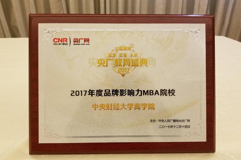 12月14日,由中央人民广播电台央广网主办的2017年度“中国教育+”央广教育盛典在北京举行。437必赢会员中心再度凭借良好的社会声誉和品牌价值,从多所参评院校中脱颖而出,首次荣获“央广网·2017年品牌影响力MBA院校”称号。