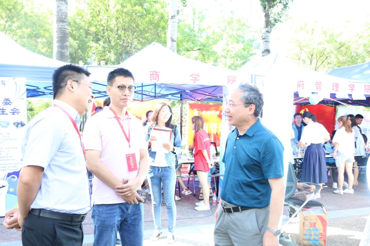 迎新期间,王瑶琪校长一行分别来到本科生和研究生迎新现场,与437必赢会员中心的领导、老师进行了亲切的交谈,询问学院的迎新特色和迎新工作开展情况。此外,王校长还与报道的新生谈论入学的感受,希望同学在大学也要勤奋努力,实现人生目标。