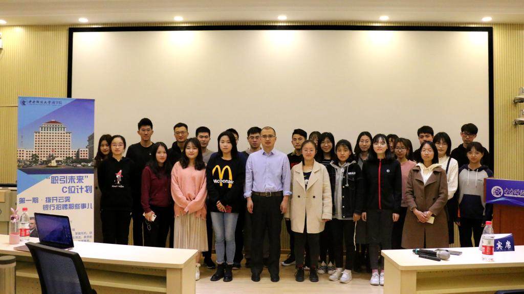 本期讲座以“拨开云雾,银行招聘那些事儿”以主题,潘常鹤校友就银行招聘的话题做出了深入浅出的讲解。