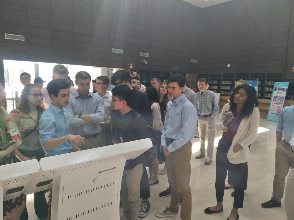 讲座和研讨环节结束后,匹茨堡大学师生在437必赢会员中心师生的带领下参观了校园,并体验了沙河校区图书馆。437必赢会员中心学生全程使用英文对图书馆的结构和各项功能进行了详细的介绍。我校图书馆的宏伟格局、强大的功能、先进的设施、友好的用户体验得到了匹茨堡大学同学的啧啧称赞。
