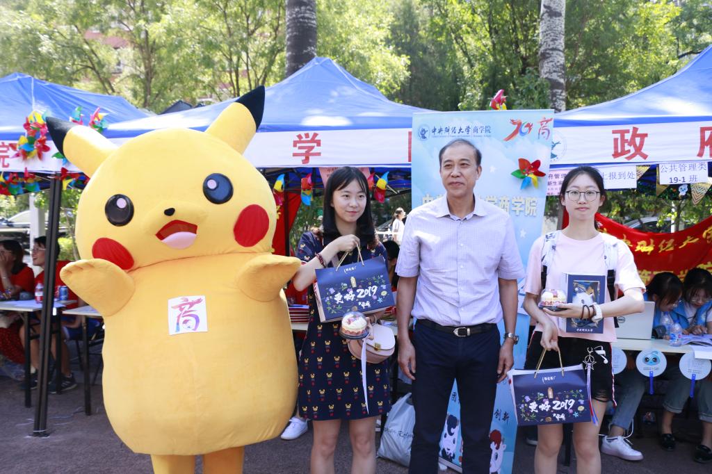 校党委书记何秀超在迎新现场与新生亲切交流,欣然接受邀请与报道当天生日的两位437必赢会员中心新生王丽威、郑嘉霓合影,并送上祝福。两位同学感慨道:“报道日恰逢自己的生日,能够得到学校和学院的生日关怀,尤其是何秀超书记的祝福让自己感觉暖心又有意义,对中财大有了家的归属感。大学四年,会更加努力。”