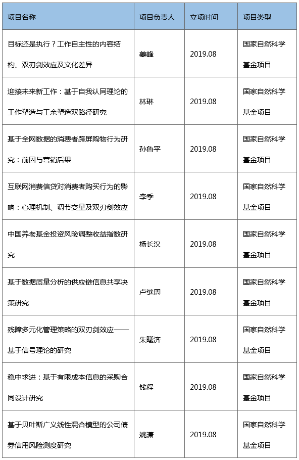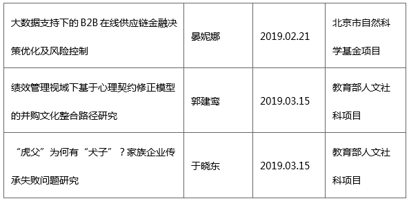 2019年以来,学院教师获9项国家自然科学基金项目立项,1项北京市自然科学基金项目立项,及2项教育部人文社科项目立项。