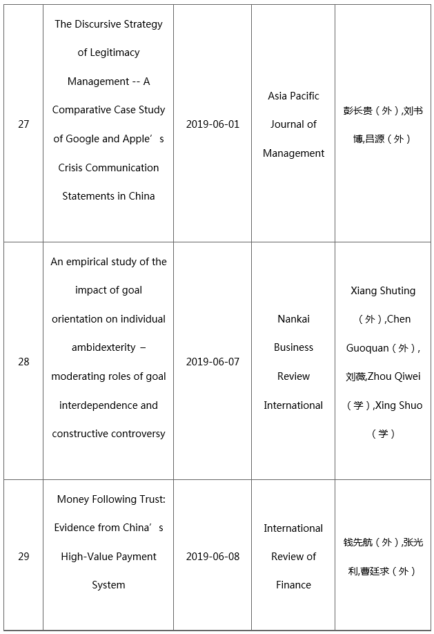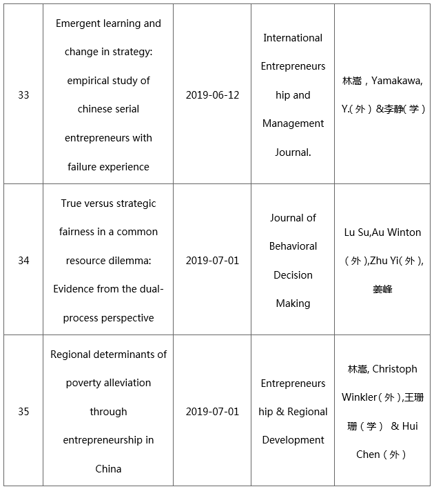 2019年以来学院教师在A类及以上中英文期刊上共发表35篇学术论文,其中外文论文25篇。论文清单如下: