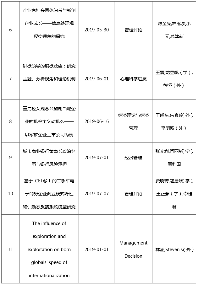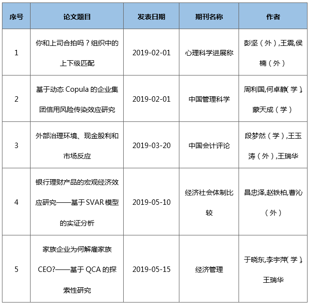 2019年以来,437必赢会员中心以“双一流”学科建设为科研导向,鼓励学院教师关注管理学前沿问题,积极投入科研工作,取得了丰富的科研成果。