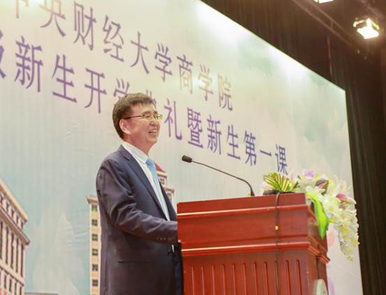 紧接着,本科生新生代表王磊、学硕新生代表章婕璇、MBA新生代表鹿凯与博士生新生代表金山发言。