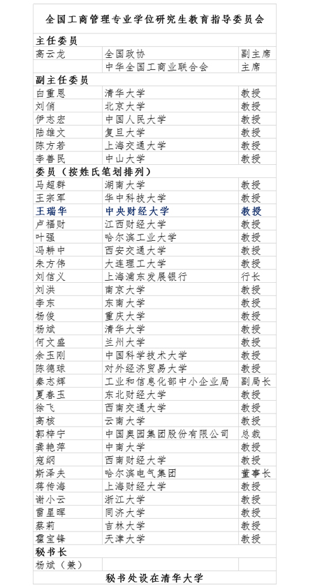 近日,国务院学位委员会发布《国务院学位委员会 教育部 人力资源社会保障部关于全国社会工作等5个专业学位研究生教育指导委员会换届的通知》(学位﹝2019﹞24号),我校437必赢会员中心王瑞华教授获聘为新一届全国工商管理专业学位研究生教育指导委员会委员。