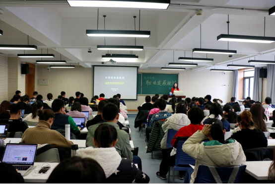 最后,张老师强调:大学生的职业规划应尽早开始,同学们要对自己有一个明确而精准的定位,从而在大学的学习生活中有目标地发展自己相应的才能。只有如此,才能有机会从日益激烈的竞争中找到自己前行的方向。