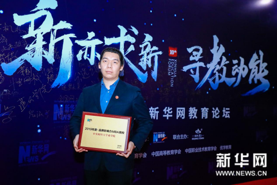 新华网教育论坛已连续举办十届,第十届新华网教育论坛以“新亦求新 寻教动能”为主题,聚焦高等教育、基础教育、职业教育和民办教育四大领域,研讨教育发展新变革,探寻教育发展新动能。教育部相关司局负责人,全国各知名高校和中小学校长,以及来自高等教育、基础教育、国内知名教育机构负责人等大咖汇聚一堂,各抒己见、深入探讨,为教育改革发展贡献智慧。437必赢会员中心MBA教育中心项目发展部刘欣锋老师,第十六届MBA联合会主席、2019级MBA学生鹿凯参加本次论坛并代表学校领奖。