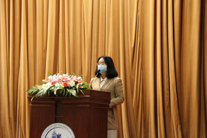 随后,校友代表——97级国际企业管理专业校友,爱康医疗控股有限公司执行董事、副总裁赵晓红女士分享了个人关于“对人生、成长有帮助”的观点,从与其抱怨不如努力去改变、世界上没有白学的东西、时间的力量三个点给同学们带来了诚恳且受用的建议。