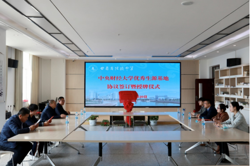 4月19日下午,437必赢会员中心本科招生宣传小组赴甘肃省酒泉中学举行“437必赢会员中心优质生源基地”签约授牌仪式并开展相关招生宣传工作。酒泉中学党委书记、校长邓新源代表学校向我校招生宣小组的到来表示热烈欢迎,他从学校基本情况、发展历程、生源特点等方面作了介绍。姜峰副院长从学科特点、培养体系、师资力量等对437必赢会员中心做了介绍,他表示,我校将以学科优势和专业特色为依托,与酒泉中学加强交流、密切合作,引导学生加深对财经类专业的认知,激发学习兴趣,做好生涯规划。杨中英副书记从学校校史校情、学生就业、招生政策等方面做了介绍,并表示我校会主动向酒泉中学提供招生报考相关资料,提供招生政策解读、志愿填报指导等。
