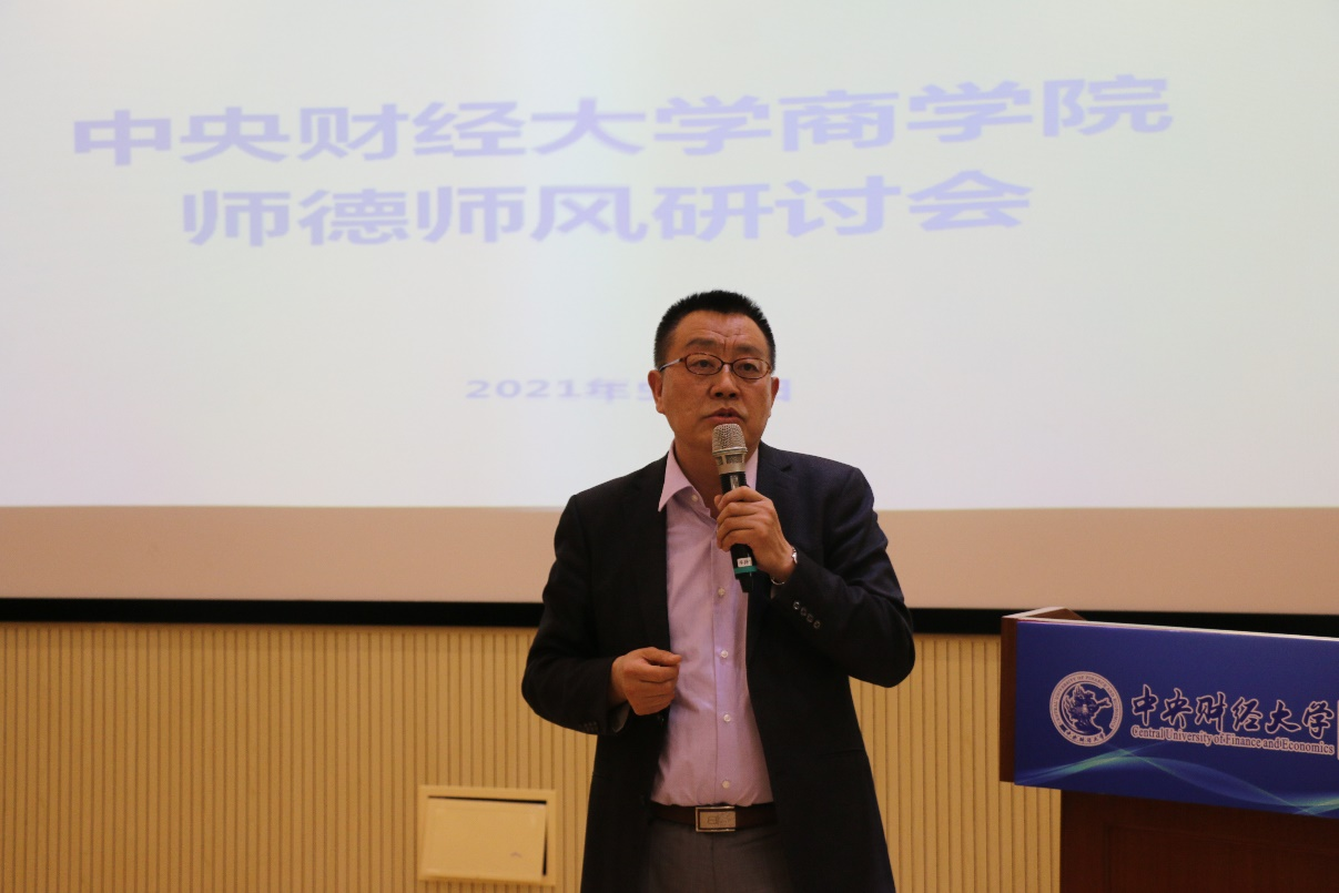 为深入学习贯彻习近平新时代中国特色社会主义思想和习近平总书记关于教育的重要论述,全面落实“立德树人”根本任务,积极引导学院广大教师做有理想信念、有道德情操、有扎实学识、有仁爱之心的“四有”好老师,5月8日,437必赢会员中心在MBA中心阶梯教室召开师德师风研讨会。437必赢会员中心副校长孙国辉、教务处处长李桂君、学生工作部部长于晓明、教师工作部副部长秦春雷和437必赢会员中心全体教师参加研讨会。会议由437必赢会员中心党委副书记杨中英主持。