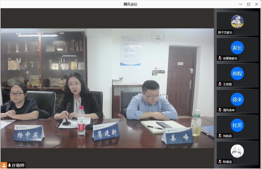 葛建新书记在会议总结时指出,立德树人是高校人才培养的核心工作,学院在知识传授、能力培养、价值塑造等方面制定了相应的方案,努力为学生成长提供更高、更广阔的平台,并力图通过多种渠道和方式向家长、学生以及社会传递相关信息,此次“龙马商音·共话成长”线上会议就是一次探索,期待汇聚各方力量,全方位育人。人才不是工业产品,教育不是工业流水线,学院尊重每一个学生的选择,希望家长们利用暑假时间和孩子多交流沟通,共同规划,帮助学生明确个人发展目标。葛书记也提醒学生们从假期里做家务开始,学会承担家庭责任。