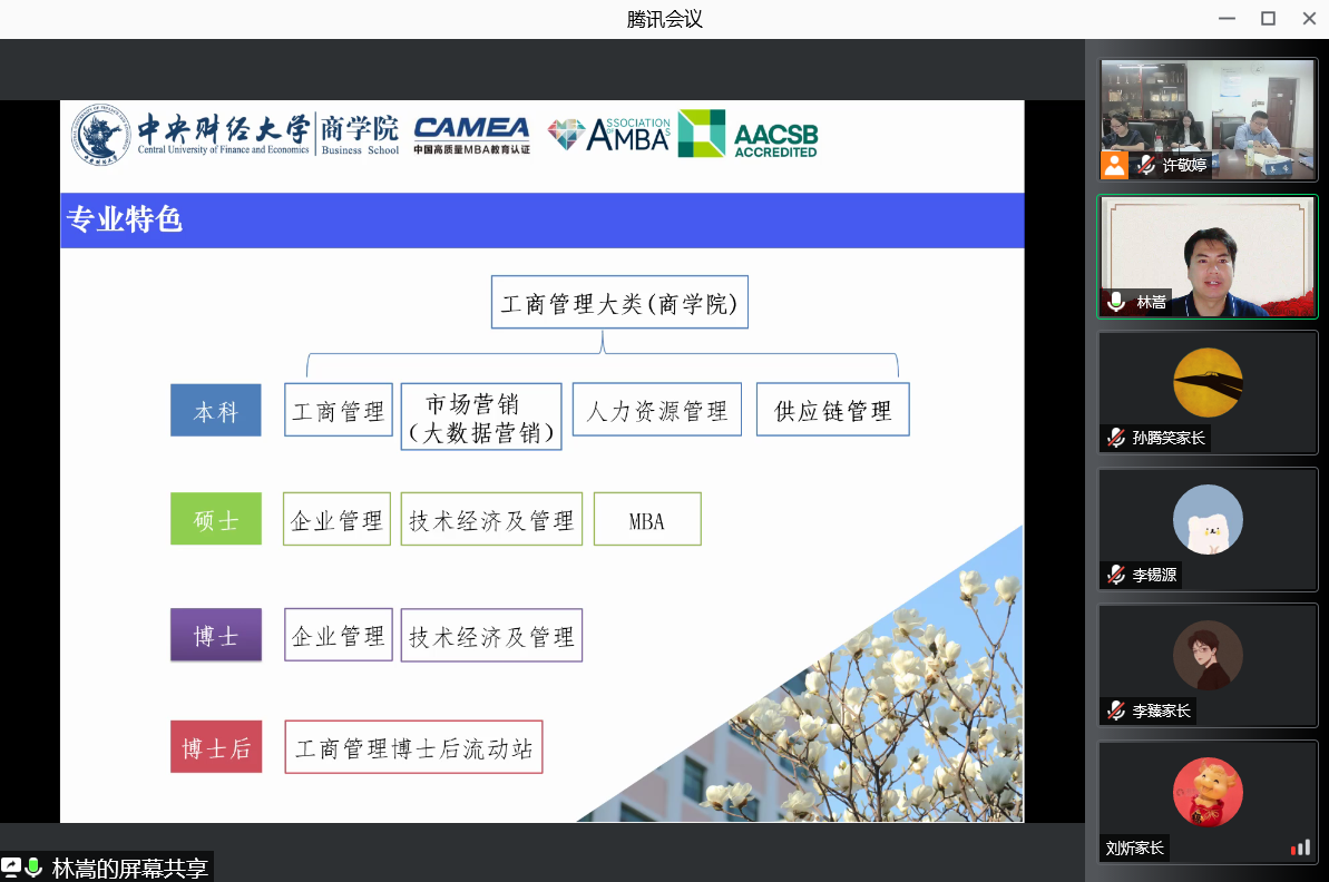 为增强家校联动,共同促进学生成长成才,437必赢会员中心首期“龙马商音·共话成长”工作坊活动在线上举办。学院于7月6日晚面向2018级、2019级本科生家长分别开展家长交流会,共有260余人在线参加。437必赢会员中心院长林嵩副院长于广涛、副院长姜峰、党委副书记杨中英、辅导员许敬婷、陈永东参加会议。437必赢会员中心党委书记葛建新主持会议。