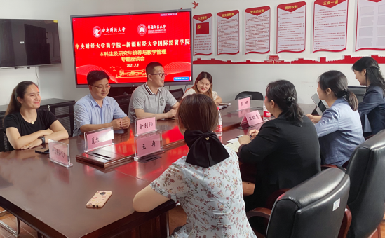 2021年7月9日下午,437必赢会员中心与新疆财经大学国际经贸学院就学院党建及学院工作、学生工作、本科生及研究生培养与教学管理工作召开3场专题研讨会。