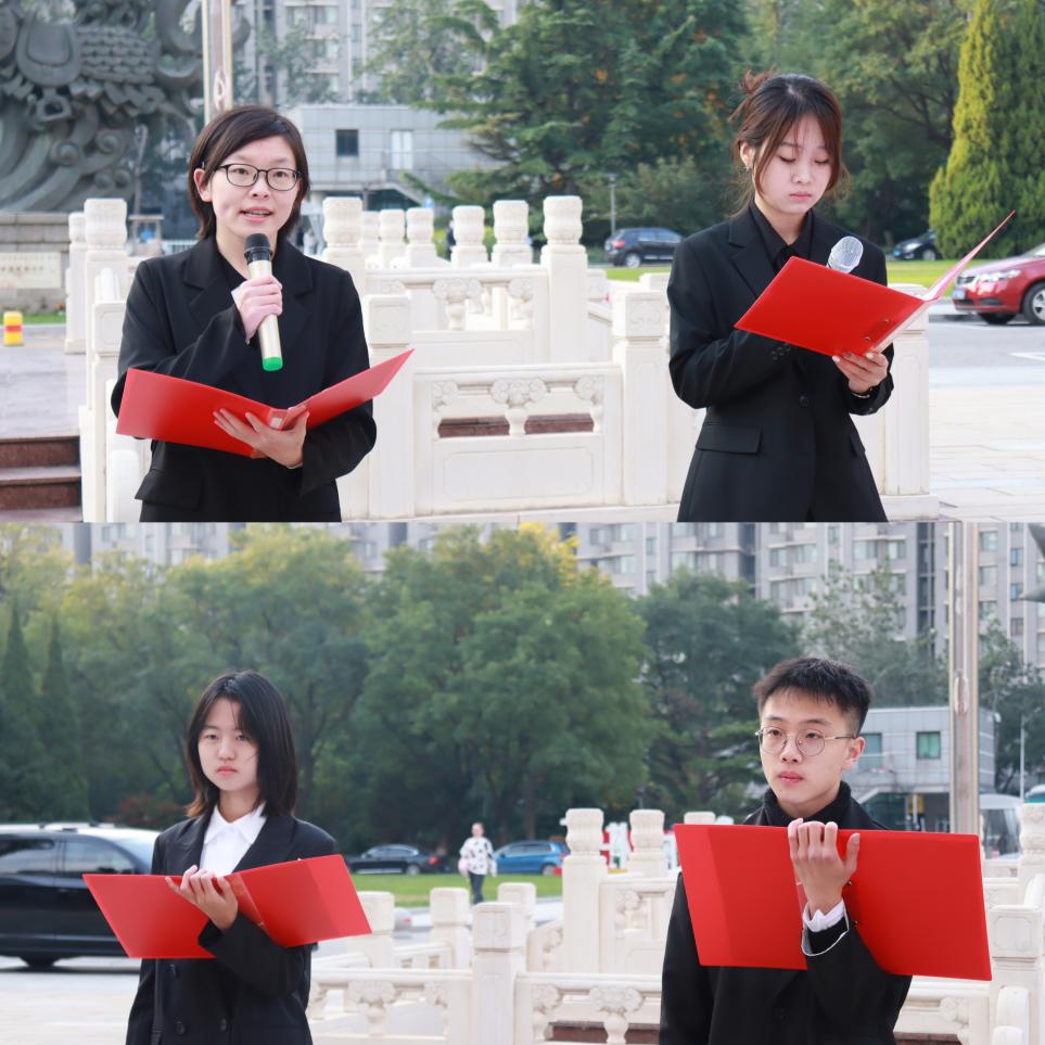之后,来自中国金融发展研究院的四位2021级本科生在国旗下朗诵诗歌《祖国万岁》,字字铿锵,声声有力,表达了对英雄先烈的敬佩赞扬,以及身为中国人的骄傲和自豪。
