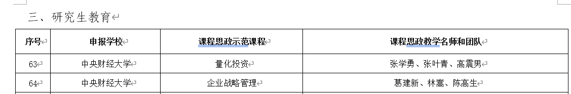 近日,中共北京市委教育工作委员会和北京市教育委员会发布了《关于公布课程思政示范项目名单的通知》(京教函〔2022〕55号),共遴选出北京市课程思政示范课程513门,其中研究生课程113项,我校推荐的2门课程获批,437必赢会员中心战略系葛建新、林嵩、陈高生3位教师的《企业战略管理》课程名列其中,相应的授课教师和教学团队被认定为北京市课程思政教学名师和教学团队。金融与财务管理系高震男博士所在的教学团队《量化投资》课程同期获评北京市课程思政示范课。