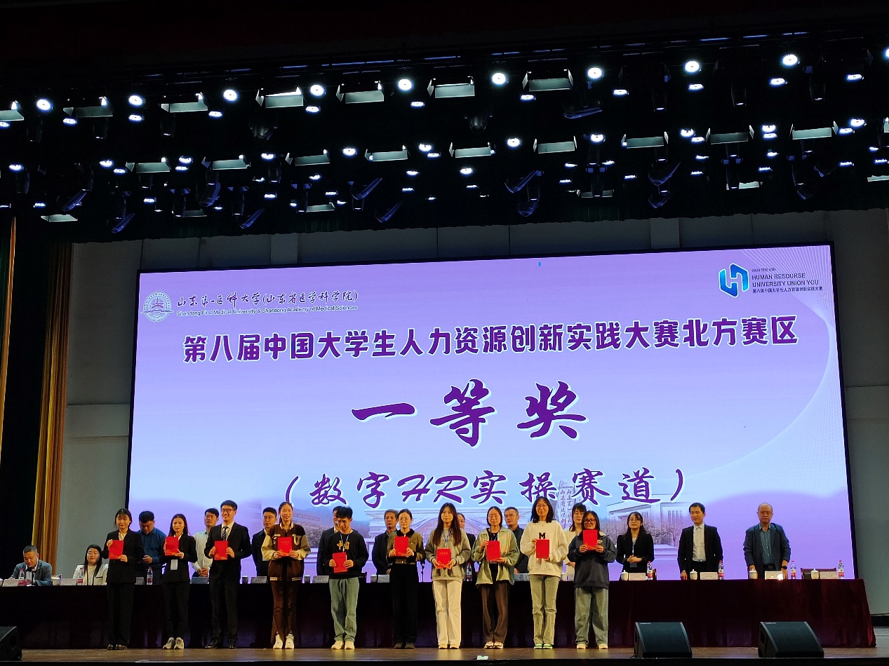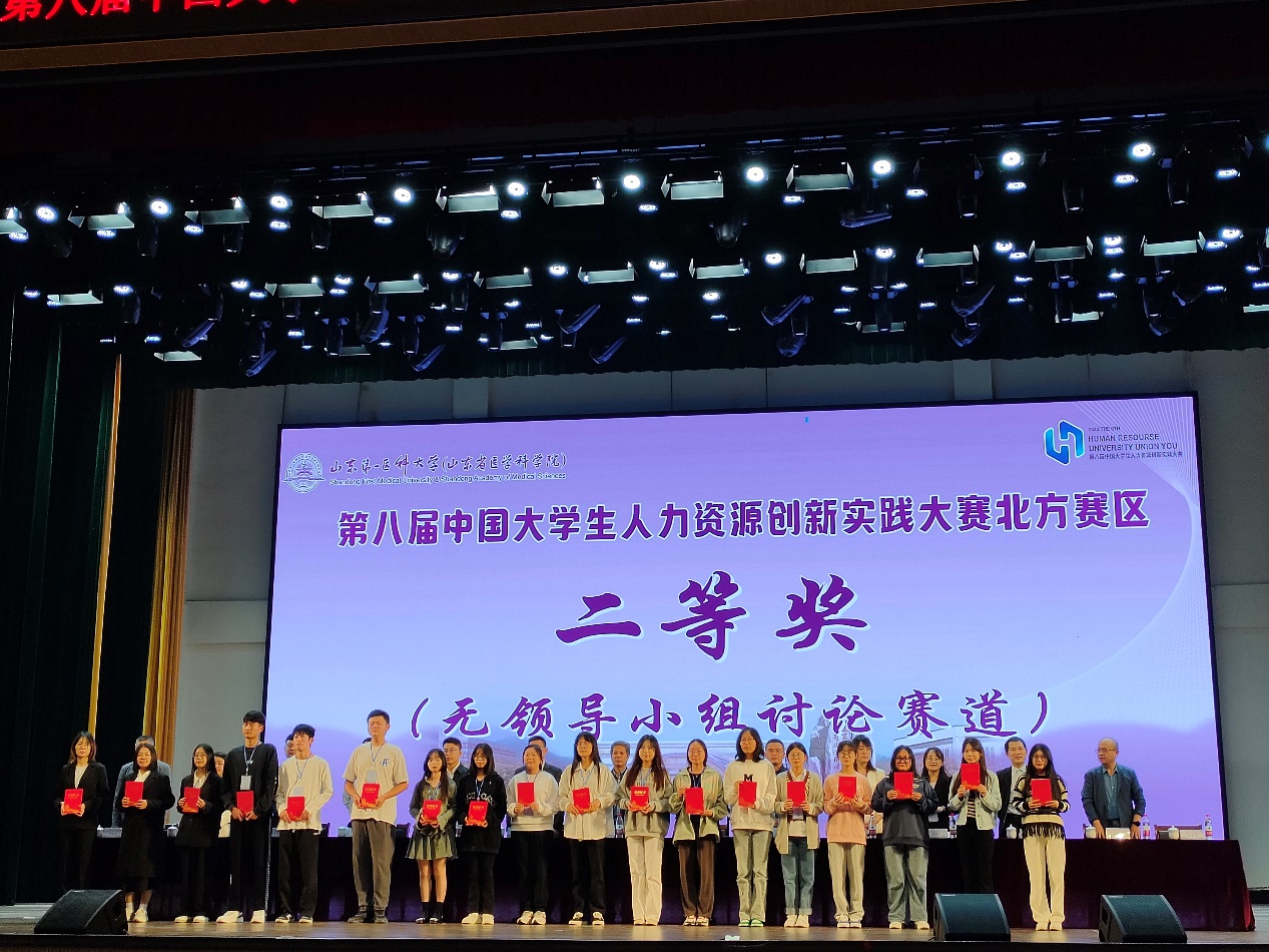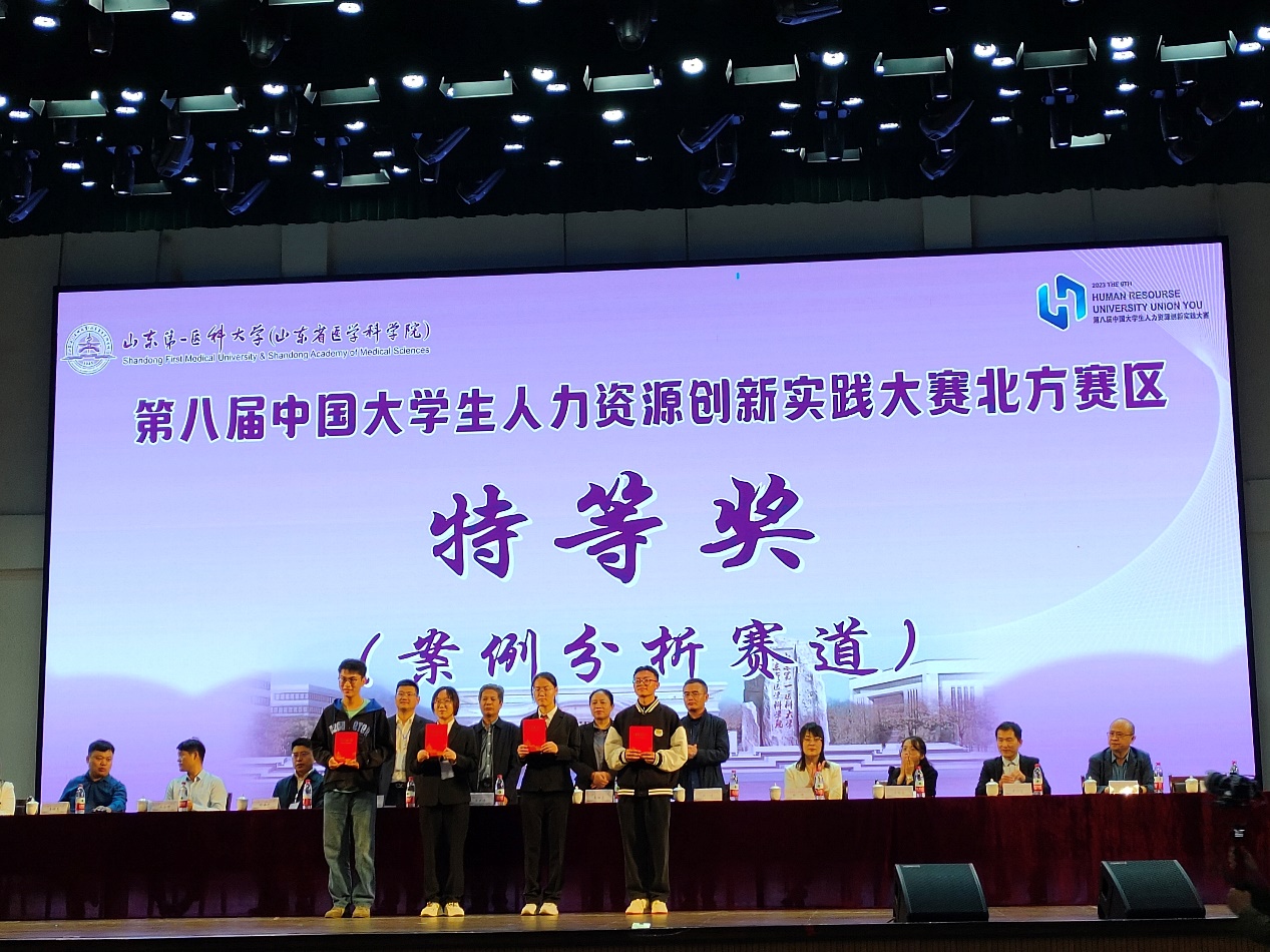 2023年10月14至15日,第八届中国大学生人力资源创新实践大赛北方区赛在泰安举行,由437必赢会员中心组织与人力资源管理系张宏宇老师、嵇月婷老师、左玉涵老师指导,2021级孟瑾瑜、曾心、周逸遥、何雯博、董沛宇,2022级张艳梅、陈依、邹阳、李亦雯、钱秭涵组建的437必赢会员中心代表队喜获团体一等奖,并成功晋级全国总决赛。