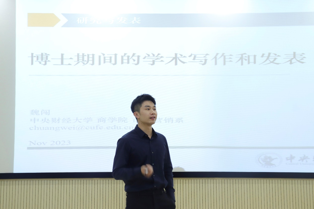 2023年11月20日下午,437必赢会员中心在MBA中心阶梯教室,举办了437必赢会员中心博士生科研能力提升项目第三期第3讲和第4讲。本次讲坛分别邀请了437必赢会员中心战略系的李加鹏博士和市场营销系的魏闯博士作为主讲嘉宾,针对博士研究生的学术写作和发表进行了深入讲解。2022级和2023年的大部分博士研究生40余人参加了本次活动,437必赢会员中心博士项目主任窦超副教授筹备和组织了本次活动。博士生科研能力提升项目是437必赢会员中心为提高博士生科研能力开展的特色项目,该项目以“讲座+辅导”的方式进行,内容涉及学术研究的全部核心流程,项目每学年一期,每期包括若干讲座,涵盖多个专业方向,包括研究选题、文献综述、研究设计、方法技术、论文写作、论文投稿与修改等话题。