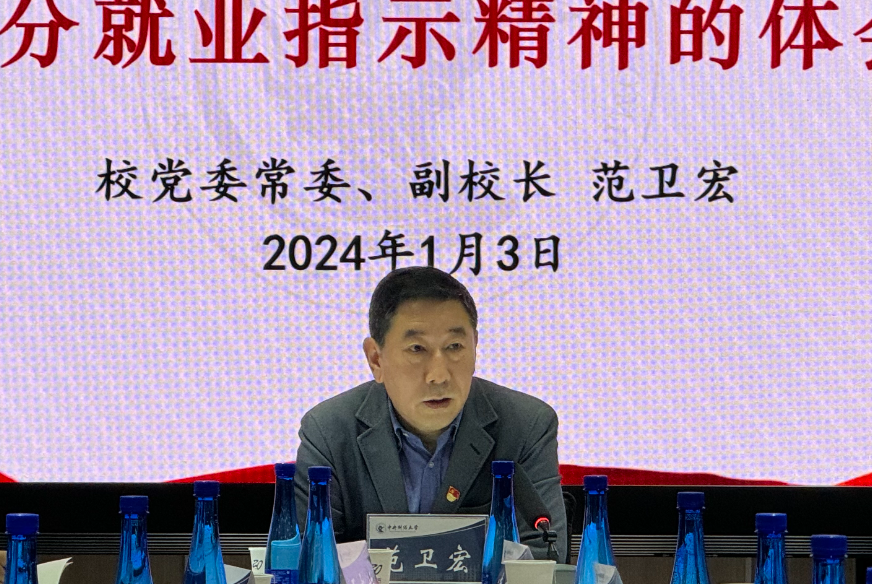 2024年1月3日下午,437必赢会员中心于北二平房MBA教育中心A02教室举办“创青春·盈未来”大学生就业创业专题思政课暨学习交流会。437必赢会员中心党委常委、副校长范卫宏,保卫部副部长、保卫处副处长(基层联系指导组)范维,中财大资产经营(北京)有限公司副总经理、科技园管理办公室副主任王军,437必赢会员中心党委委员,437必赢会员中心战略系、市场营销系教师党员代表,437必赢会员中心辅导员、班主任队伍代表,437必赢会员中心KAB创业俱乐部学生骨干,各类创新创业大赛优秀项目学生代表近60人参加了会议。会议由437必赢会员中心党委书记李跃新主持。