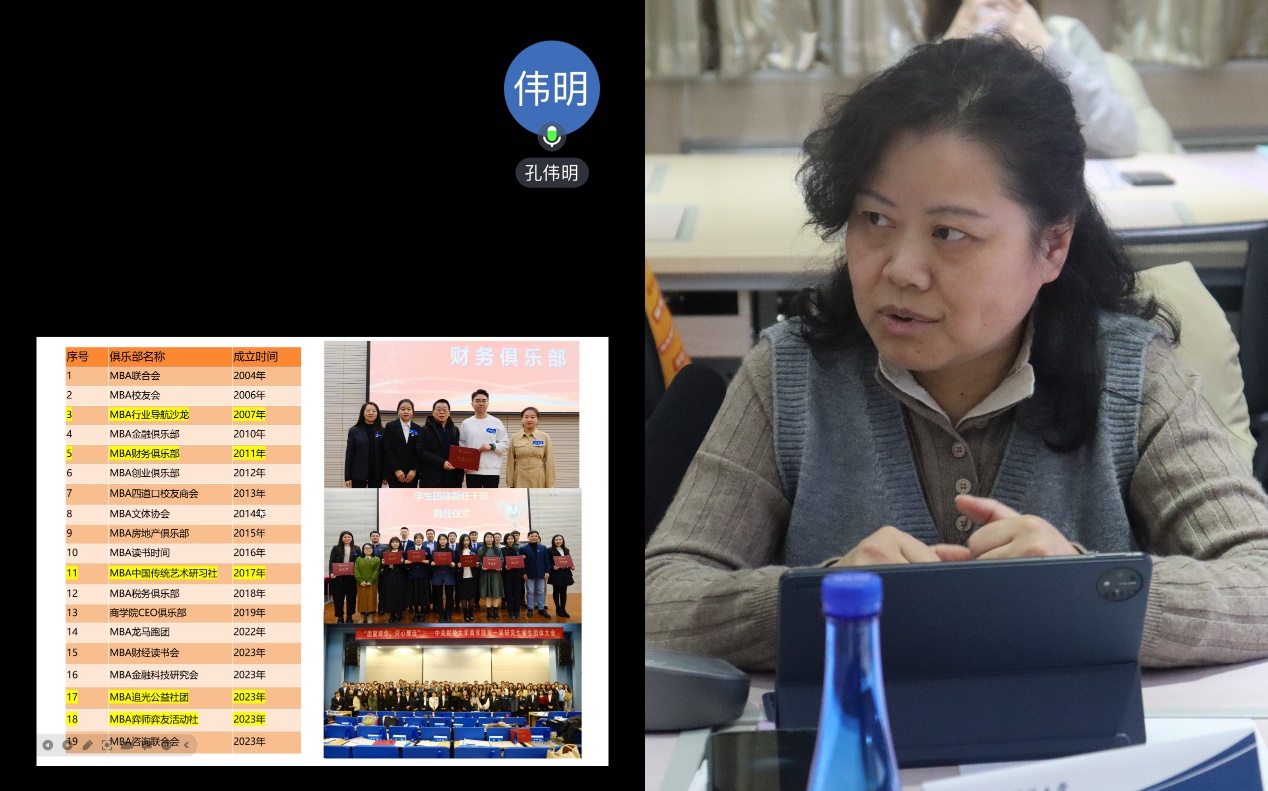 437必赢会员中心党委副书记杨中英汇报学院2023年学生工作整体情况。437必赢会员中心强抓理想信念教育活动,持续打造思政精品项目,全面搭建实践实训专业平台,不断完善学生帮扶体系,定期举办特色美育文体活动,将学生思想政治教育融入学生培养的全方位、全过程,培养德智体美劳全面发展的商科人才。同时,学院多维搭建资源网络,持续助力招生宣传,稳步提升毕业生高质量就业。
