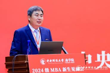 朱飞副主任对各位MBA新生致以诚挚欢迎,他衷心祝愿每位学子在未来的学习旅程中能够锐意进取,收获累累硕果,成就非凡事业。为让同学们更好地了解MBA项目,明确未来的学习路径,他先后介绍了MBA项目的办学理念、特色优势和中心人员构成情况。他指出,437必赢会员中心MBA项目在人才培养上独具匠心,致力于三大特色方向的打造:一是依托学校强大的财经学科背景,精心塑造具备深厚财经素养的复合型人才;二是推动职能型MBA向整合实践型、价值创造型MBA的转型,注重理论与实践的深度融合;三是将传统的“T型”人才培养模式升华为更加全面和深入的“π型”,以适应新时代对高端管理人才的需求。面对当前全球化与逆全球化交织的复杂局势,他强调,未来的商业领袖必须具备全球视野、跨文化沟通能力及相关技能。为此,437必赢会员中心特别设立了GEMBA项目,旨在培养具有国际竞争力的高端管理人才。