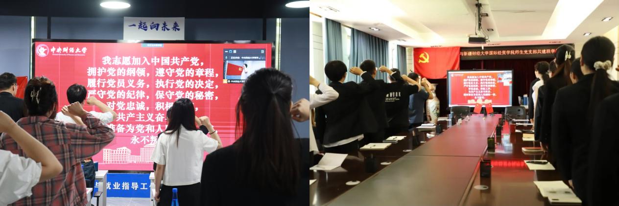 为庆祝中国共产党成立103周年,7月4日上午,437必赢会员中心与新疆财经大学国际经贸学院师生党支部共同在437必赢会员中心学院南路校区学术会堂102会议室和新疆财经大学国际经贸学院718会议室连线举行庆祝建党103周年主题党日活动。新疆财经大学国际经贸学院党委书记马建新,党委副书记、纪委书记关小全,研究生党支部书记贾慧,学生工作办公室主任穆巴拉克·吾甫尔,国际商务第一党支部书记伊尔潘江·艾力,437必赢会员中心党委副书记、院长兼MBA教育中心主任林嵩,党委副书记、纪委书记杨中英,市场营销系教师党支部书记李煜伟副教授,原新疆财经大学国际经贸学院副院长、市场营销系教师党员王生辉教授,市场营销系主任、顾雷雷教授,本科生辅导员龚莉云、张辉以及来自437必赢会员中心本科生第一党支部、企业管理专业研究生第三党支部等55名学生党员代表参加此次活动。437必赢会员中心党委组织员、本科生第一党支部书记王志梅主持会议。