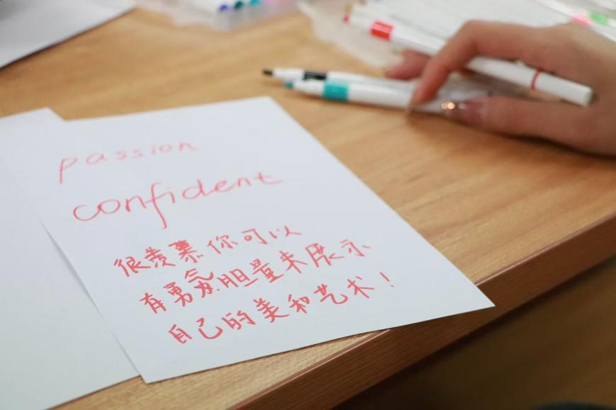 接下来的肖像绘制环节,女生们以心为笔,将彼此的印象化作斑斓的色彩,勾勒出对方独一无二的闪光点。于纸张的背面,一笔一划镌刻下对方的优点,将心中漫溢的赞赏毫无保留地倾吐。
