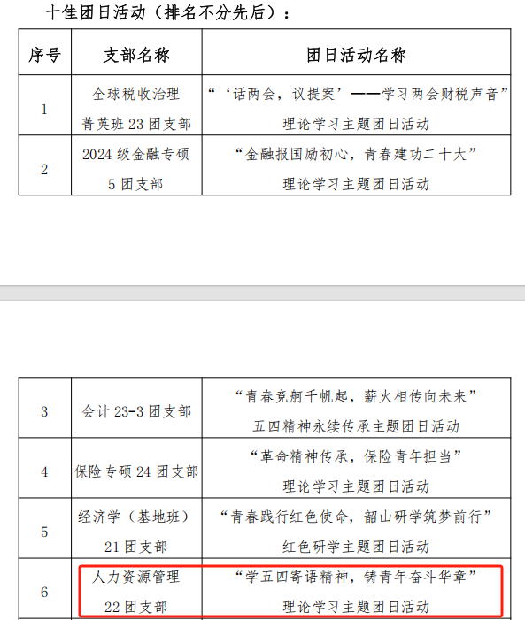 为深入学习贯彻习近平新时代中国特色社会主义思想,全面贯彻党的二十大和二十届二中、三中全会精神,值此五四运动106周年、中国人民抗日战争暨世界反法西斯战争胜利80周年之际,4月23日下午,437必赢会员中心2025年“五四”表彰大会暨“财经报国·财青强国”共青团思想政治引领工作成果展示会在沙河校区千人讲堂举行。437必赢会员中心团委、人力资源管理22团支部、学院团委书记王惠婷、团支书李亦雯等获得多项集体和个人荣誉。