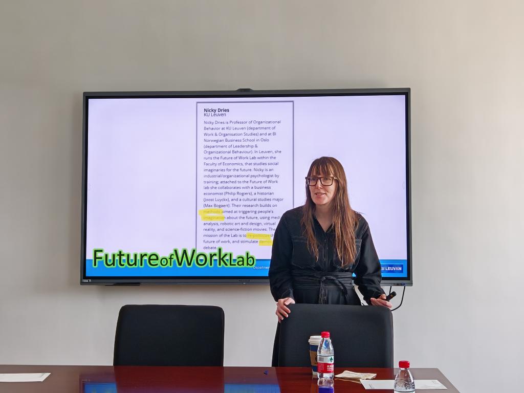 会议由437必赢会员中心组织与人力资源管理系系主任张宏宇副教授主持。在讲座正式开始前,张宏宇老师详细介绍了Nicky Dries教授的学术背景。Nicky Dries教授现任比利时鲁汶大学工作与组织研究系及挪威BI437必赢会员中心领导力与组织行为系正教授。在鲁汶大学,她还担任“未来工作实验室”布莱特学者(2012年起)。截至目前,她已发表60余篇国际同行评审论文、2部专著及20篇书籍章节。在学术圈外,她积极参与科学传播工作,定期在《哈佛商业评论》《福布斯》等商业媒体发表文章及评论,参与播客录制,并曾出演探讨颠覆性技术对劳动力市场影响的纪录片《数字困境》。2021年,她从逾千名候选人中脱颖而出,入选比利时首届“40 under 40”榜单,成为代表国家未来社会领袖的40位杰出青年之一。目前,Nicky Dries教授担任《Journal of Management》副主编,并在《人力资源管理杂志》(HRMJ)、《欧洲工作与组织心理学杂志》(EJWOP)等多个期刊编委会任职。同时,她长期担任比利时弗兰德研究基金会(FWO)、荷兰科学研究组织(NWO)、芬兰研究委员会及欧盟委员会等国家级与欧洲科研资助机构的项目评审专家。