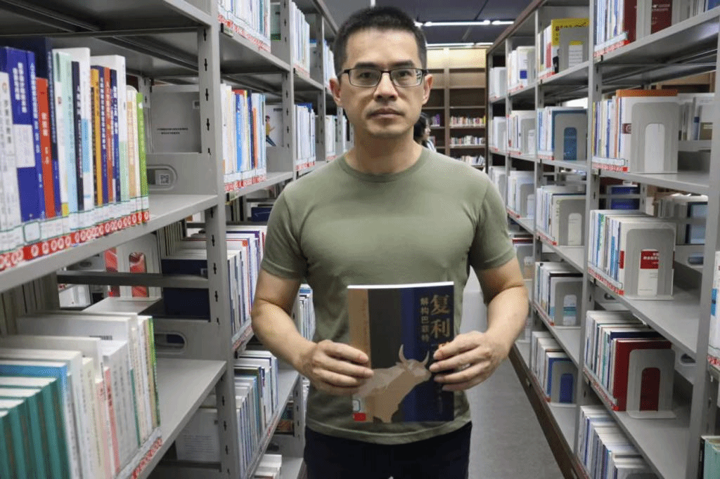 在参观图书馆时,林水龙校友在新书展区看到自己的著作《复利王:解构巴菲特》,这本书如今被沙河校区图书馆收藏,成为校友为母校增光添彩的珍贵礼物。林水龙校友与书籍合影留念,表达他对母校的深情回馈。