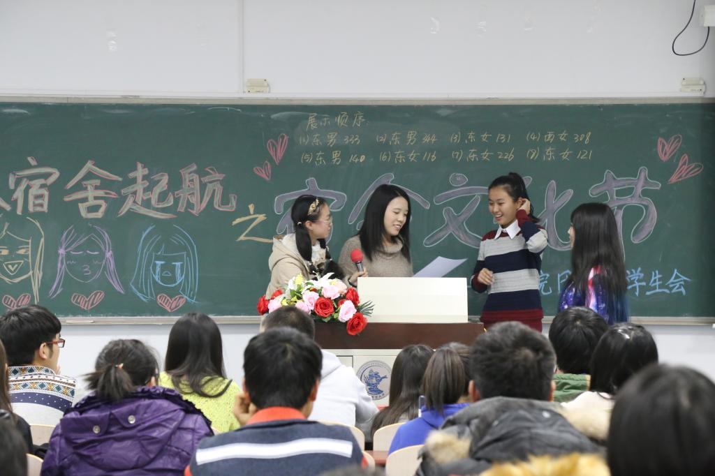 决赛现场,除参赛宿舍外,所有15级宿舍长现场观看学习。团总支副书记黄莎致辞,强调了开展宿舍文化建设活动对于丰富必赢官网同学生活文化,展现青春风貌的重要意义。主持人介绍了举办本次宿舍文化节决赛的相关规定后比赛正式拉开了帷幕。进入决赛的八个优秀宿舍,现场进行限时五分钟的宿舍风采展示:各参赛小组通过包括视频、ppt、话剧及舞蹈等形式多样,风格迥异的展示方式博得了评委及观众的一致好评。随后进行的游戏环节“心有灵犀”——每支参赛队伍挑选出的两名队员回答同一道问题,以此考验宿舍成员之间的了解程度和默契度。