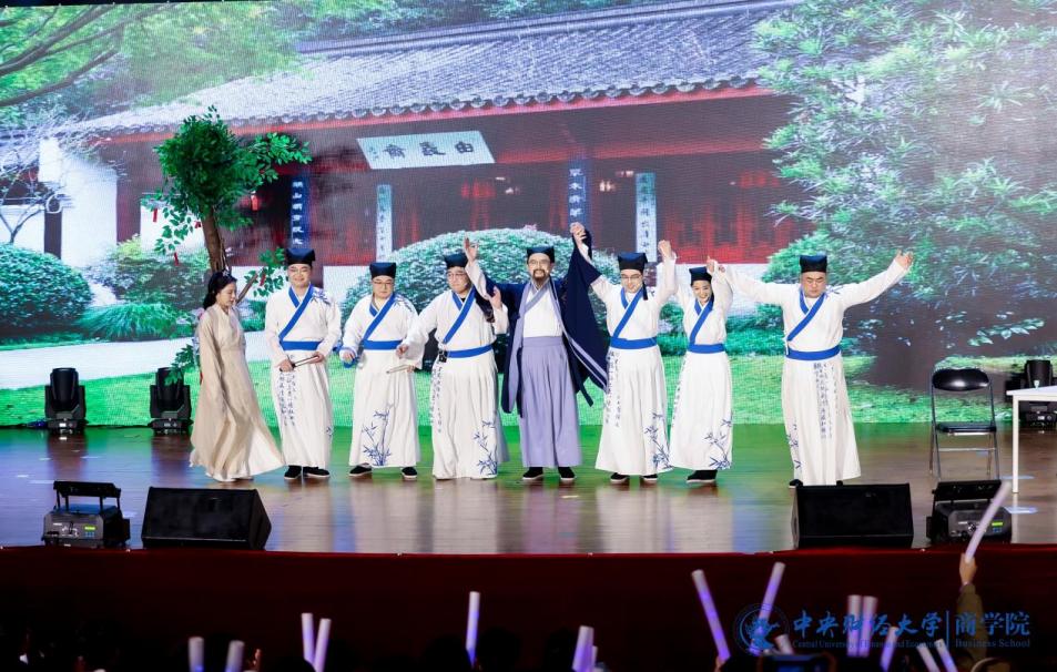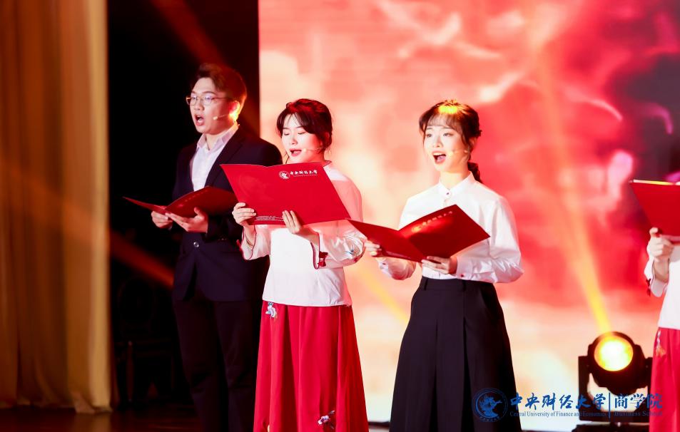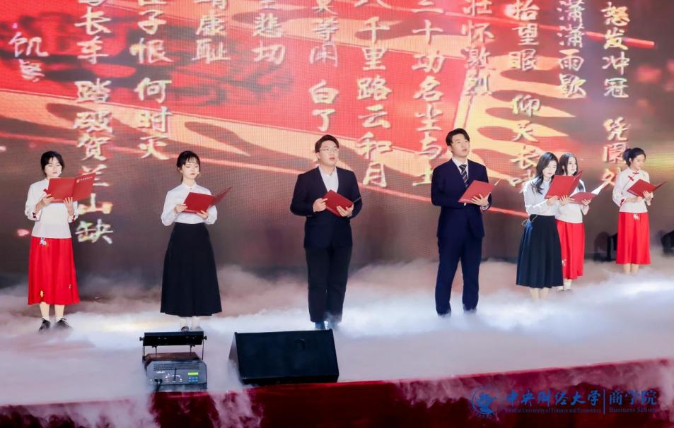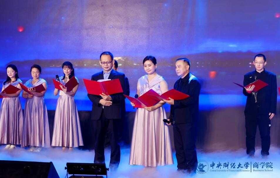 中财MBA推广大使团带来的集体舞《爱的华尔兹》优雅登场,舞步翩翩恰似恋人之语,展现爱情的甜蜜与轻盈。商海启程,谁来领航?437必赢会员中心徐兆铭、安贺新、王生辉、庞守林、周利国、贾晓菁等18位老师朗诵《领航》,声音浑厚,真情灼灼,用朗诵来表达心中引领航向、不惧风浪的伟大信念。2024级MBA全日制班代表与王茜舒、张耀天、牛钟毓等带来的《一起向未来》充满着对未来的期待,青春洋溢的歌声里展现积极乐观的风采。