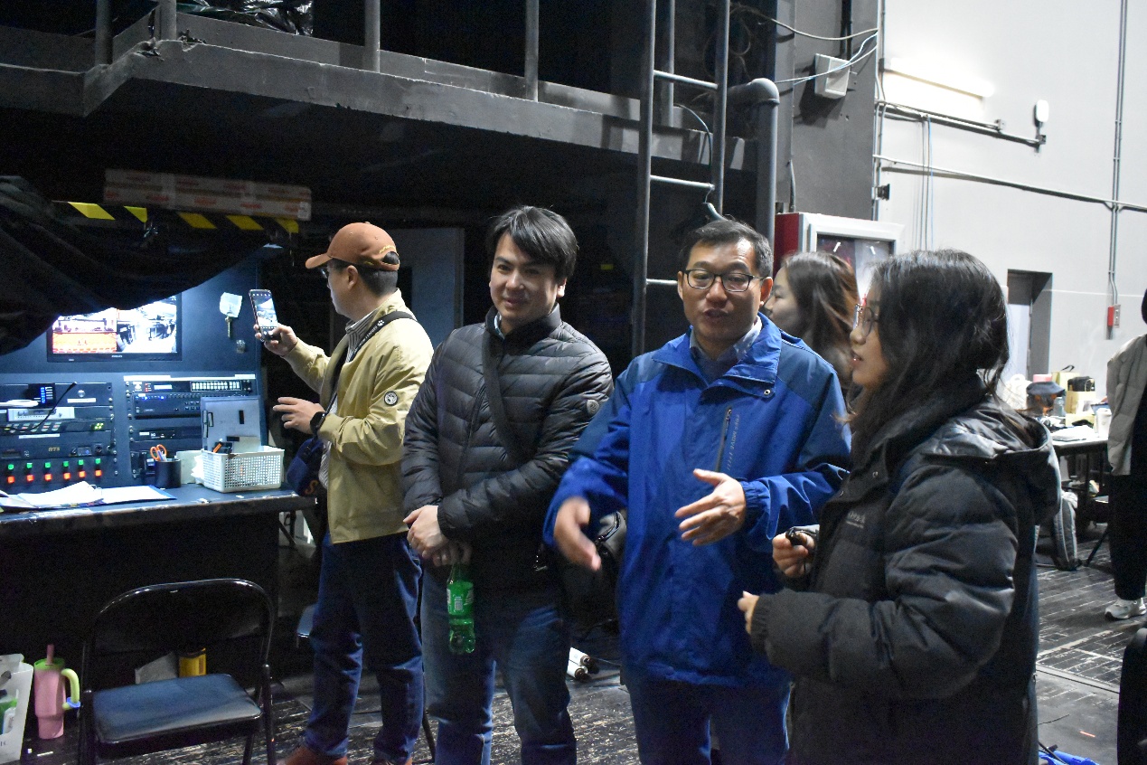 参观结束后,教师们走进剧场后台,深入了解中央戏剧学院戏剧管理系学生们的学习、实践情况。在剧场后台,学生们忙碌的身影随处可见,他们有的在调试灯光音响设备,有的在精心布置舞台道具,还有的在为演员们整理服装。通过与学生们交流,教师们了解到戏剧管理系学生通过剧目排演不仅积累了丰富的实践经验,还培养了团队协作能力和创新精神。中央戏剧学院的教师们也向437必赢会员中心的教师们分享了戏剧管理系在人才培养方面的经验和成果,双方就如何更好地培养学生的综合素质进行了深入探讨。