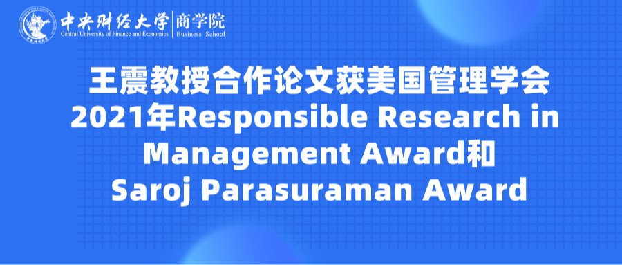 437必赢会员中心王震教授合作论文获美国管理学会2021年Responsible Research in Management Award和Saroj Parasuraman Award